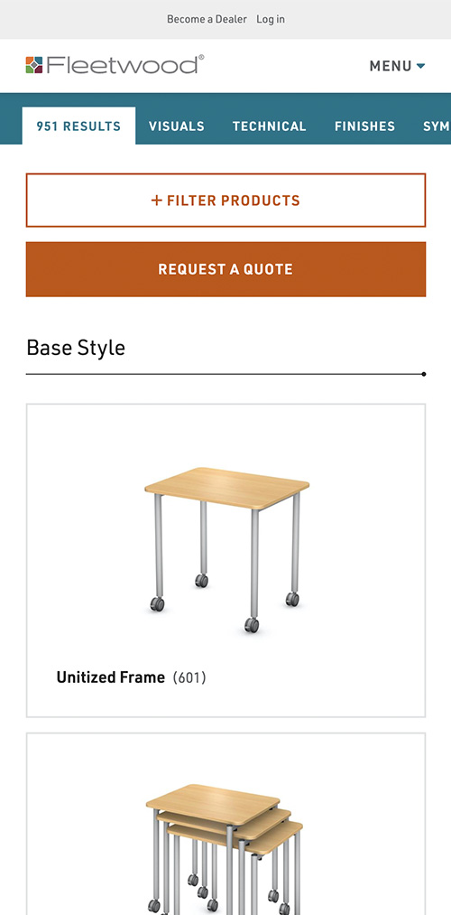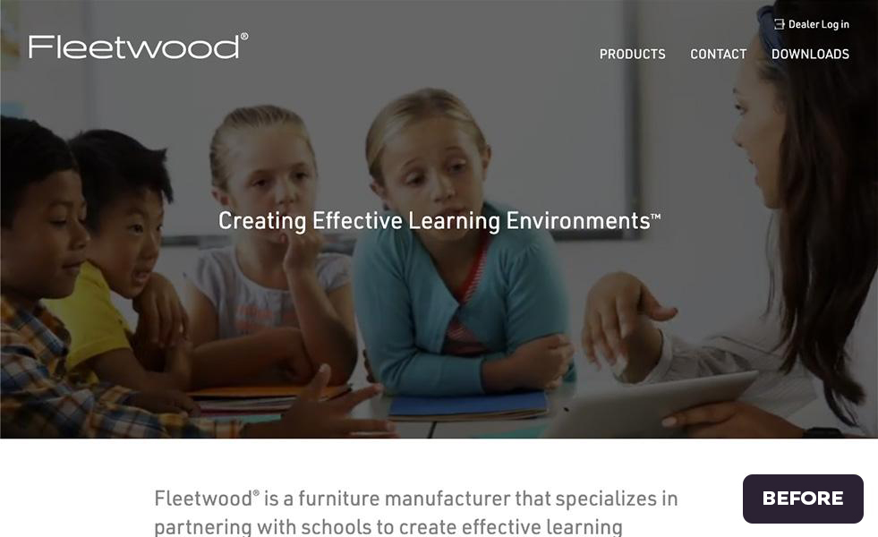 Fleetwood Furniture needed a website upgrade in order to match their online presence with their evolving brand. Their previous website did not tell the full story of the brand either in content or in design, so the new website needed to establish expertise and differentiate them from competitors. The company offers thousands of unique SKUs of classroom furniture, so they also needed their new website to allow users to browse products and locate specific product documentation.